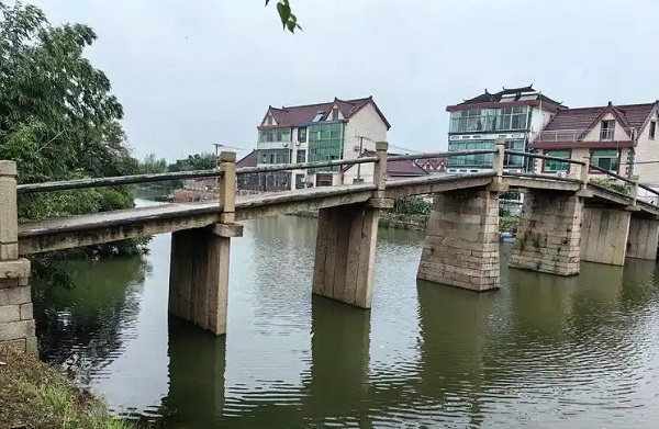 这座古桥全长43.6米、桥面宽2.19米,28块厚重长条石紧密拼接成桥面,六座桥墩支撑起七跨桥面的经典形制。这种布局在江南地区罕见,也让它成为上海域内跨度最大、现存唯一的七孔石桥,远远望去,宛如一道横跨河面的“水上长廊”,尽显清代桥梁的规整与大气。