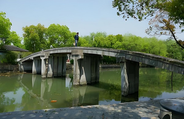 这座五孔梁式砖石桥独具匠心,采用砖、木、石混合结构:青石桥柱沉稳支撑桥体,石柱上架设条石横梁,横梁之上密排兼具韧性与耐久性的楠木,桥面两侧外侧覆贴水磨方砖以保护大梁,既适配水乡潮湿环境,又延长了桥梁寿命。它全长34米、宽逾2米,最具特色的是“无栏无阶”设计,桥面纵向呈一道柔和的弧形坡面,既能顺应水乡地形、减少通行阻力,又尽显元代桥梁简约大气的风格,其科学的结构设计与精湛的工艺水准,即便在今日仍让建筑专家赞叹不已。