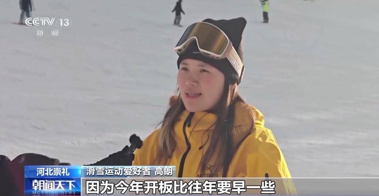 滑雪运动爱好者 高朗:因为今年开板比往年要早一些,刚好跟朋友也有时间,可以来崇礼感受一下不同的滑雪氛围。从北京下飞机,高铁一个小时就到了,对于我们这些南方的人来说就很方便。